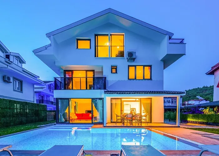 The 150 m^2 Infinity Lily Villa provides good lodging in Fethiye. This venue has 4 bedrooms and 4 bathrooms.